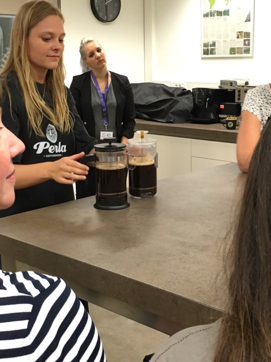 We gingen op bezoek bij Albert Heijns eigen Perla koffiefabriek en aan het eind van dit uitje stond iedereen te stuiteren van de cafeïne en chocolade haha! Er waren drie workshops: koffie keuren, koffie leuten en chocolade proeven. Bepaald geen straf! Je kon hier echt zien met hoeveel liefde deze mensen werken aan de heerlijkste smaaksensaties. Toen ik iets vroeg over cholesterol en koffie zonder filter (dus gemalen bonenkoffie uit een cupje of bijvoorbeeld gemaakt met zo'n profi cafetière) waren ze echter minder blij. Voor veel producenten staat smaak voorop en zijn factoren als gezondheid en milieu secundair, zou toch mooi zijn als ze alledrie gelijk zouden staan aan elkaar en als diervriendelijkheid ook in die mix werd meegenomen... Lekkere koffie dus, van het merk Perla, wat ook een merk is van Albert Heijn. Net als Delicata: Albert Heijns chocolademerk. Er lagen enorm veel smaken chocola uitgestald op tafeltjes. Een deel ervan gelukkig ook vegan, want puur. Vooral de smaak gember/limoen was heerlijk! Die was dan ook gauw op en toevallig was 'ie ook bij mijn Albert Heijn uitverkocht. Dit is dus een aanrader!