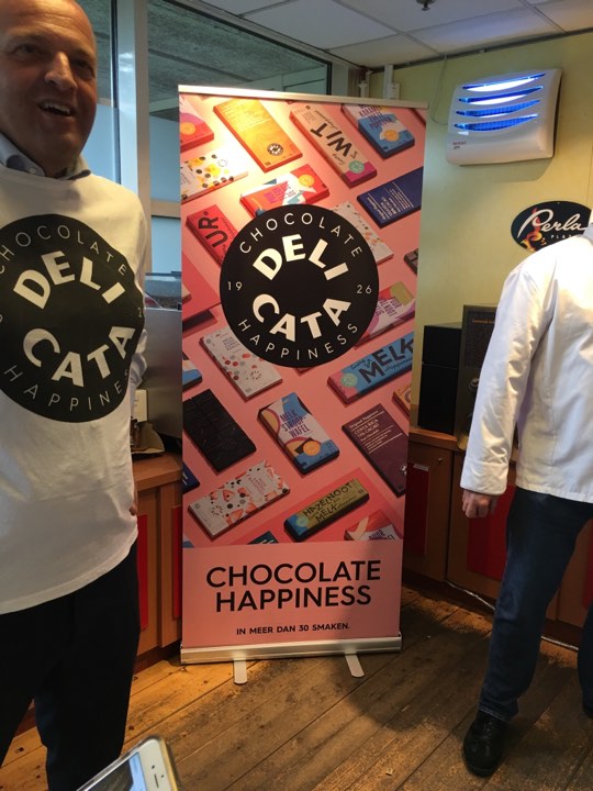 Ik sprak nog met een van de smaakontwikkelaars en vroeg of hij weleens vegan melkchocolade had geproefd, van Vego bijvoorbeeld. Hij had wel plantaardige melkchocolade geproefd, meer geen Vego. Ik hoop dat 'ie 'm nog gaat proeven en dat de mega grote koemelkchocoladereep van Delicata over een tijdje ook gewoon vegan is. Want waarom zou je een koe uitmelken als je net zulke lekkere chocolade kan maken van plantaardige melk? Ik vertelde hem dat ik Tony Chocolonely ook al had uitgedaagd, maar die komen steeds maar weer met nieuwe koemelkchocoladsmaken op de proppen waar vegans dus helaas niet van mogen meegenieten. Niet echt fair van ze toch? Ik ben benieuwd welk Nederlands chocolademerk uiteindelijk met de primeur van de écht lekkere, romige, plantaardige melkchocolade komt. Tot die tijd blijft Vego chocola mijn favoriet en die is te koop bij de Ekoplaza.