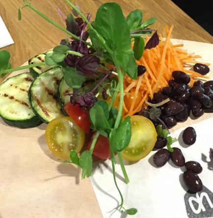 De dag begon om 12:00 op het hoofdkantoor van Albert Heijn. Er stond een lunch klaar, maar voor de veganisten moest de chef kok toch even iets speciaals maken, want in de salades zaten toch dierlijke producten - wat ik soms echt niet kan begrijpen trouwens: waarom vlees/vis/kaas/ei in een salade?! Het is toch de bedoeling dat een salade gezond is? Maar goed. De kok was echt heel lief en maakte een prachtig ogend bordje groenten voor me klaar. Ik was er blij mee, maar mijn niet-vegan tafelgenoten vonden me een beetje zielig met m'n worteltjes en boontjes. En daar was ik natuurlijk weer minder blij mee, want als vegan eet ik lekkerder dan ooit en nu leek het alsof ik alleen maar sla en worteltjes eet. Aan de andere kant: ik kan tegenwoordig echt genieten van de pure smaken en structuren van groenten, je smaak verandert als je je eetgewoontes verandert. Mijn tafelgenoten kregen nog kleine pita-broodjes met pulled pork. Omdat ik best wel in een vegan bubble leef, dacht ik even: "Hey, dat is leuk!" - om vervolgens weer terug op aarde te belanden: "o nee, dat is natuurlijk gewoon nog echt vlees, afkomstig van dieren en niet van planten".